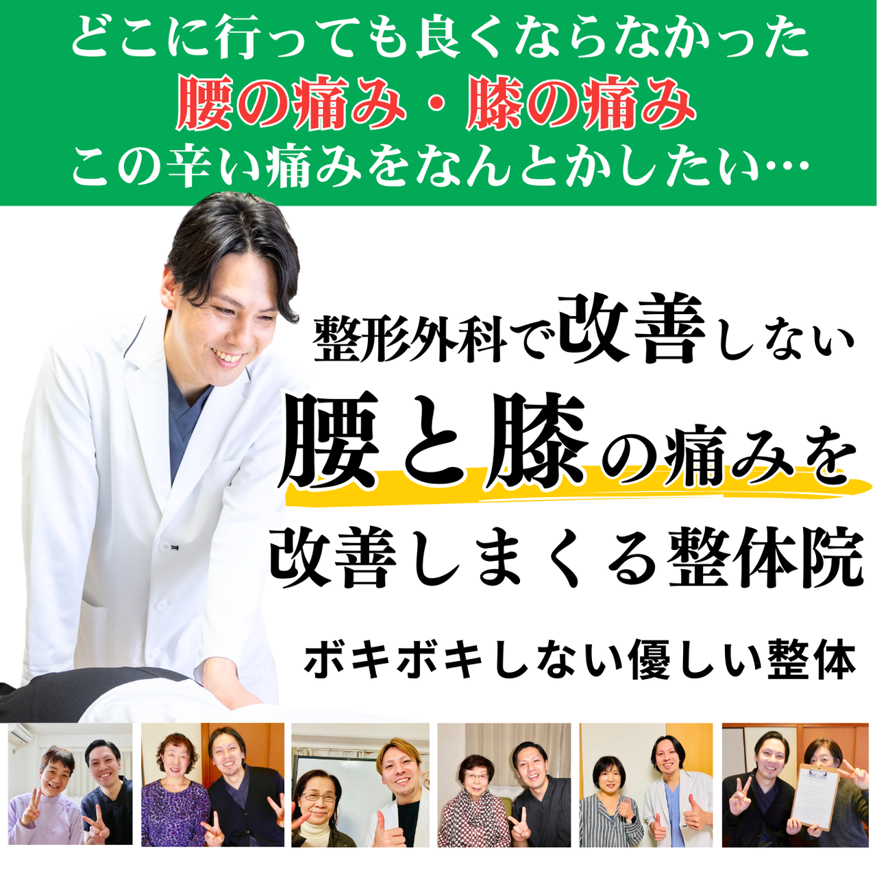 施術を受けるたびに良くなり、先生の説明には希望を持てました。今では膝の痛みはなくなりスイスイ歩けます。腰痛と肩こりもありましたが、それも無くなりました。